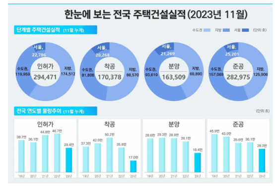 2023.11월 말 현재 전국 미분양 주택은 총 57,925호이다. 특히 포항시 같은 경우는 3,896세대로 구단위로 최대이다. 대구 같은 경우도 수성구, 동구, 중구 등 전 지역이 미분양 상태이며 미분양 가구수는 지난해 11월 현재 10,328호이다. 미분양 주택은 태영처럼 건설업 폐업, 부도 등으로 국민경제에 많은 영향을 끼치게 된다. 특히 현재 전국적으로 미분양 주택은 점차 늘어나고 있는 추세이다.