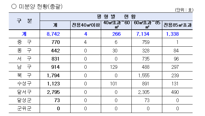 2025.3월 대구시아파트미분양현황(출저 : 대구광역시)