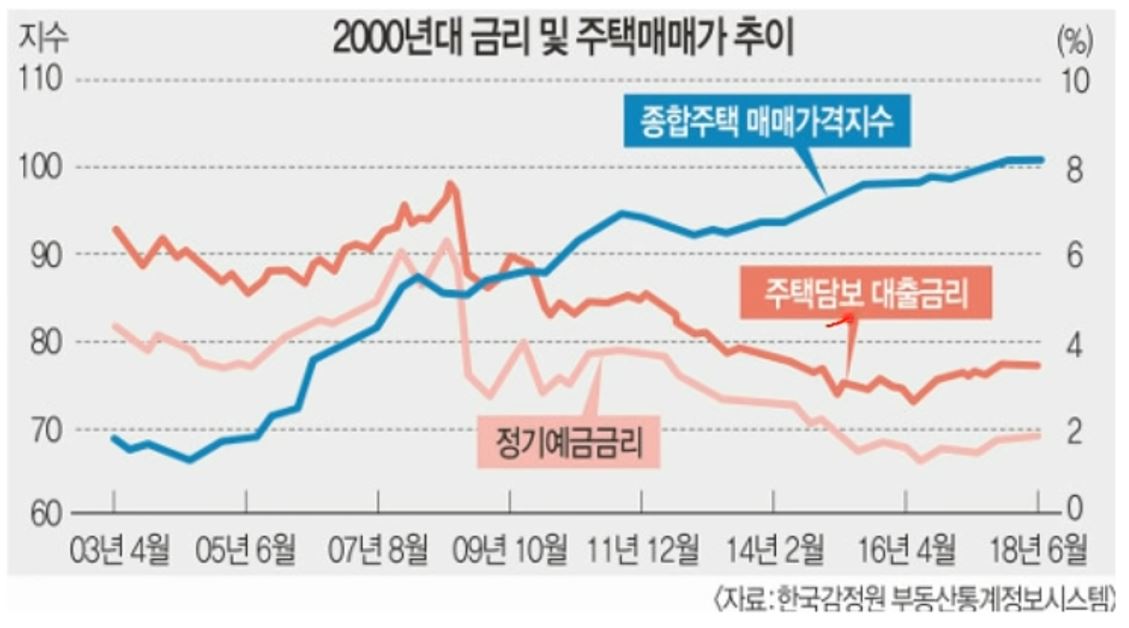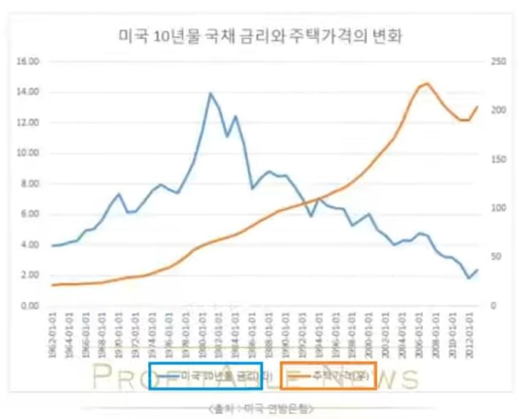 여기서 금리와 주택가격의 상관관계를 알아보자.